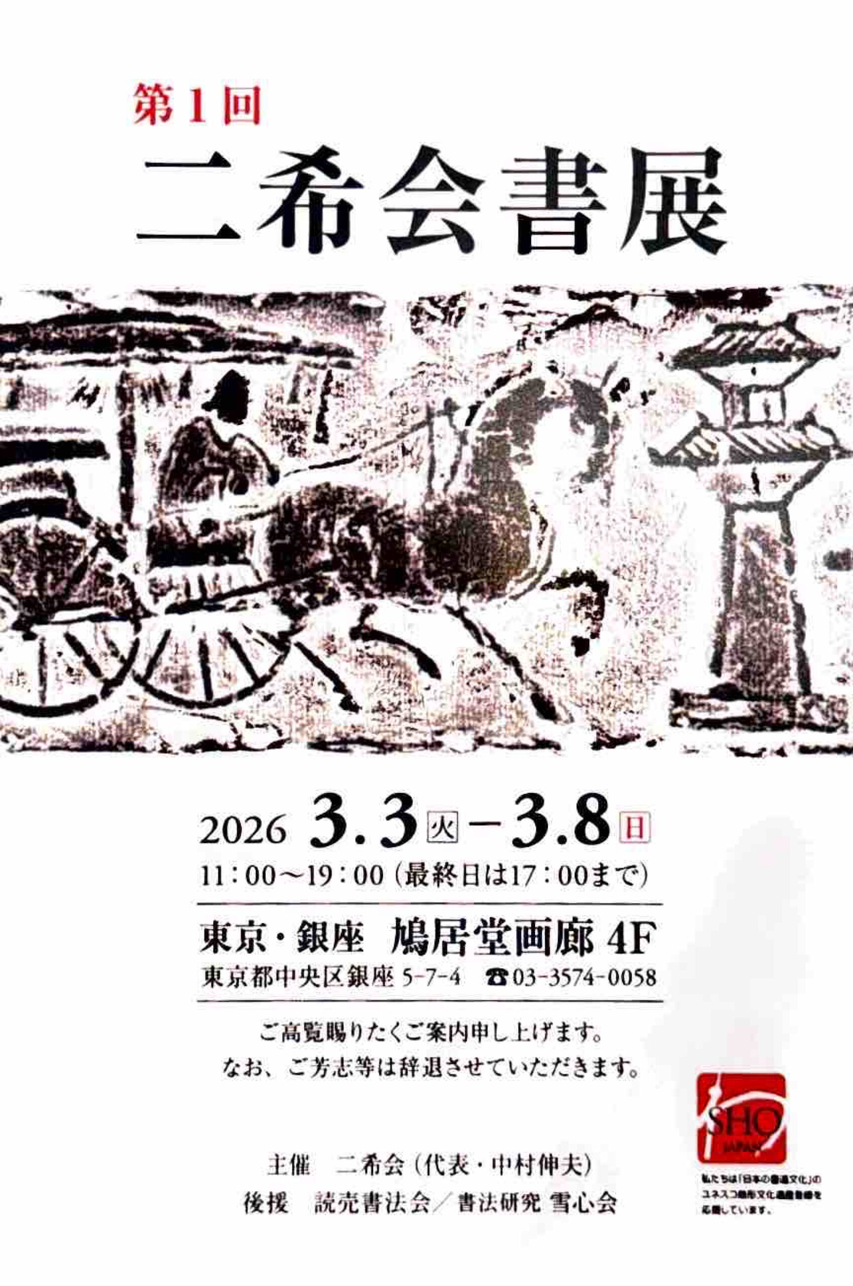 第1回二希会書展となります。春の息吹を銀座で感じていただければ幸いです。